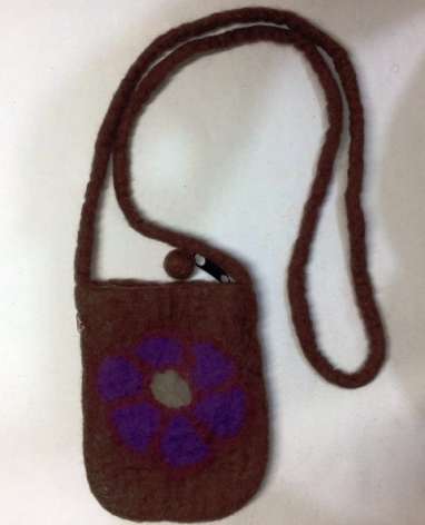Felt small bag brown/flower Felt small bag brown/flower Zipper with textile lining Size: 15 cm x 12 cm Shoulder strap length: 70-80 cm PRICE: 7 €/PCS 1 pcs to basket