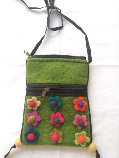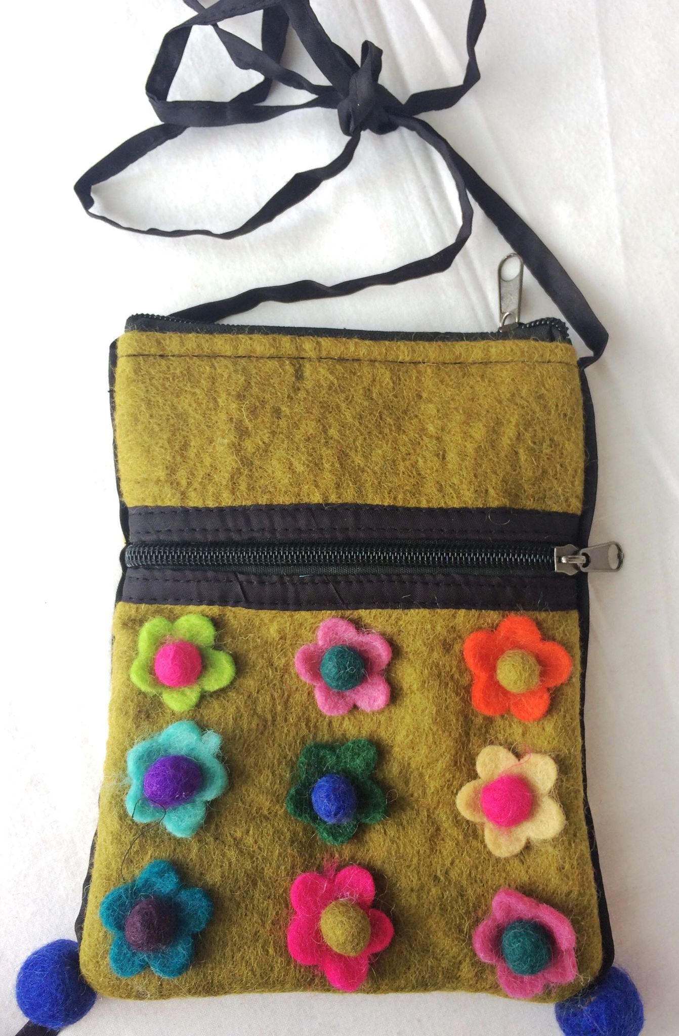 Felt small bag flower/ olive green bl. Felt small bag flower/ olive green bl. PRICE: 10 €/PCS 1 pcs to basket