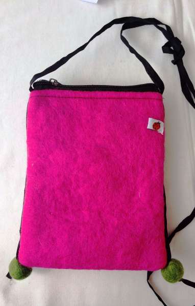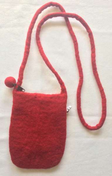 Felt small bag light red/purple Felt small bag light red/purple Zipper with textile lining Size: 15cm x 12 cm Shoulder strap length: 70-80 cm PRICE: 7 €/PCS 1 pcs to basket