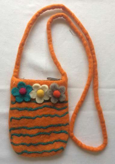 Felt small bag with flowers orange Felt small bag with flowers orange a pánt hossza 120 cm. A táska mérete 15X20 cm. PRICE: 10 €/PCS 1 pcs to basket