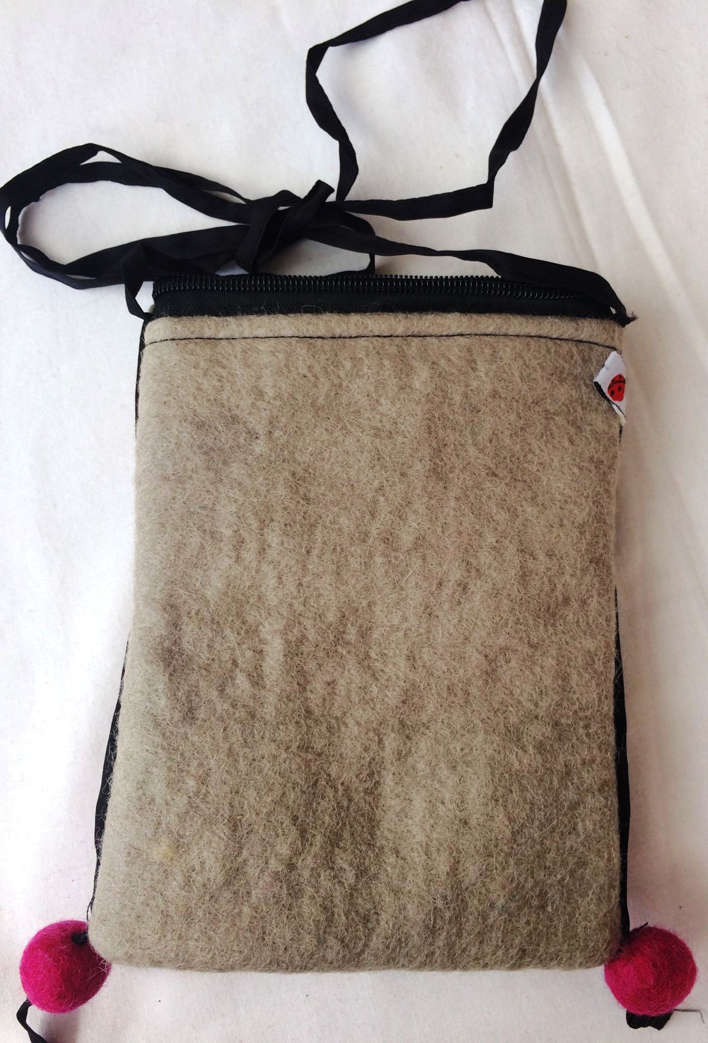 Felt small bag light grey/red/green Felt small bag light grey/red/green Zipper with textile lining Size: 15 cm x 12 cm Shoulder strap length: 70-80 cm PRICE: 7 €/PCS 1 pcs to basket
